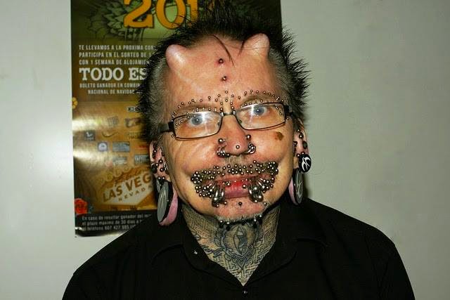 His name is Rolf Buchholz and he has over 453 piercings with 278 of them around his genitalia. Buchholz, who also has horn implants in his head, says he was ordered to never return to Dubai
